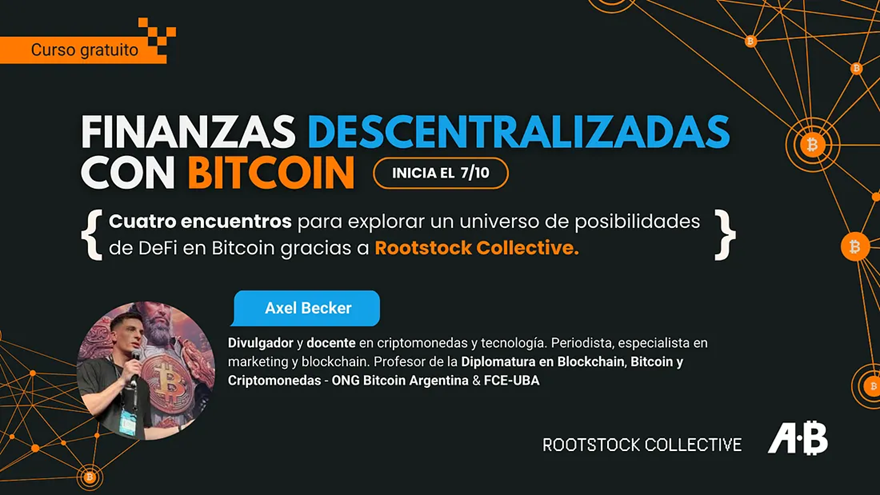La ONG Bitcoin Argentina anuncia el lanzamiento del Curso de Finanzas Descentralizadas en Bitcoin, una capacitación gratuita y online que busca acercar a la comunidad el conocimiento necesario para comprender y participar en el ecosistema de DeFi sobre Bitcoin. La iniciativa cuenta con el apoyo de Rootstock Collective, referente internacional en infraestructura descentralizada sobre la red Bitcoin.